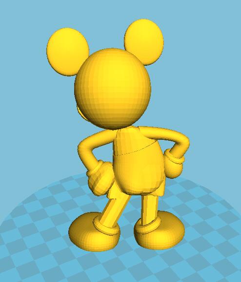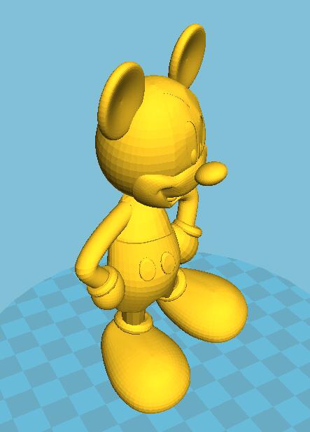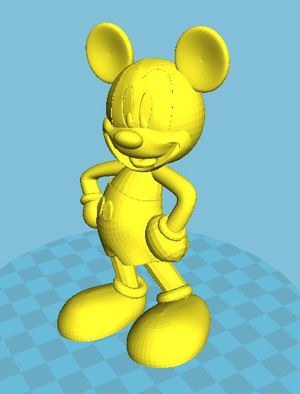 米奇老鼠,迪士尼代表人物形象,是一只有著圓滾滾的大腦袋,圓滾滾的大耳朵,梨形的身體與像橡膠軟管一樣柔軟,沒有明顯的關節,可以自由拉伸仿佛沒有骨骼的四肢的小老鼠。他以隨和,樂觀,活躍,充滿奇思妙想的性格廣受世界各地的觀眾的歡迎。下面是3D打印米老鼠模型,